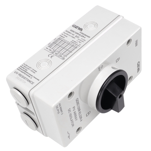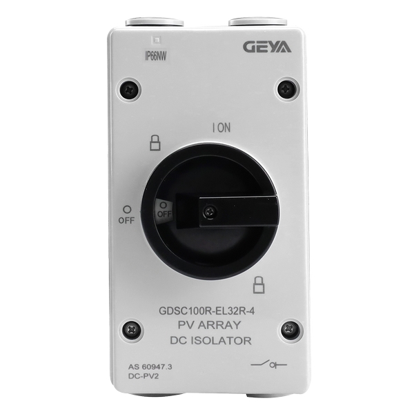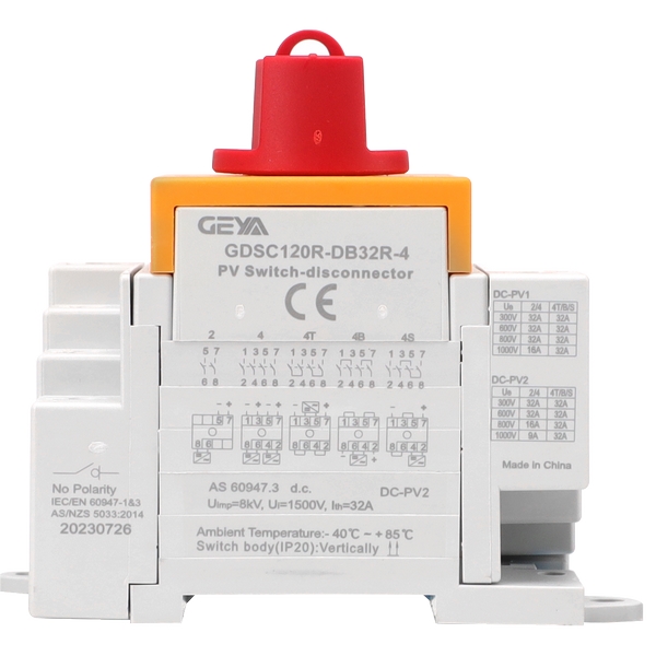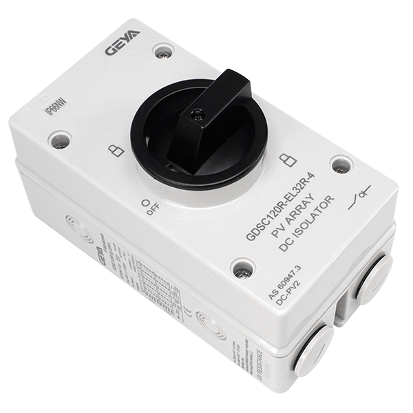 產品介紹:GDS120R型光伏隔離開關適用于額定電壓為DC1200V、額定電流32A及以下的電力系統,采用耐紫外線和V0級阻燃型的材料,可用于不頻繁的開關,并可同時斷開1-2條MPPT線路,特別適用于高壓直流輸電和配電系統種的線路隔離,例如切斷太陽能電池板和逆變器之間的高壓直流電流。